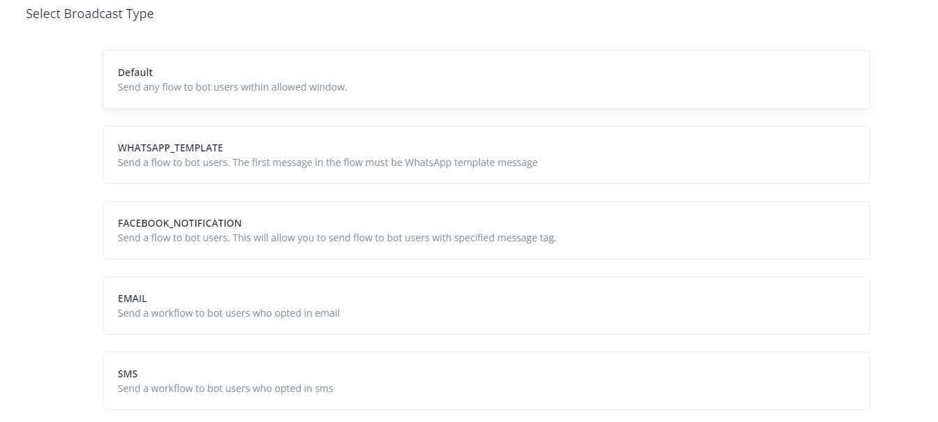 Select the message type/destination