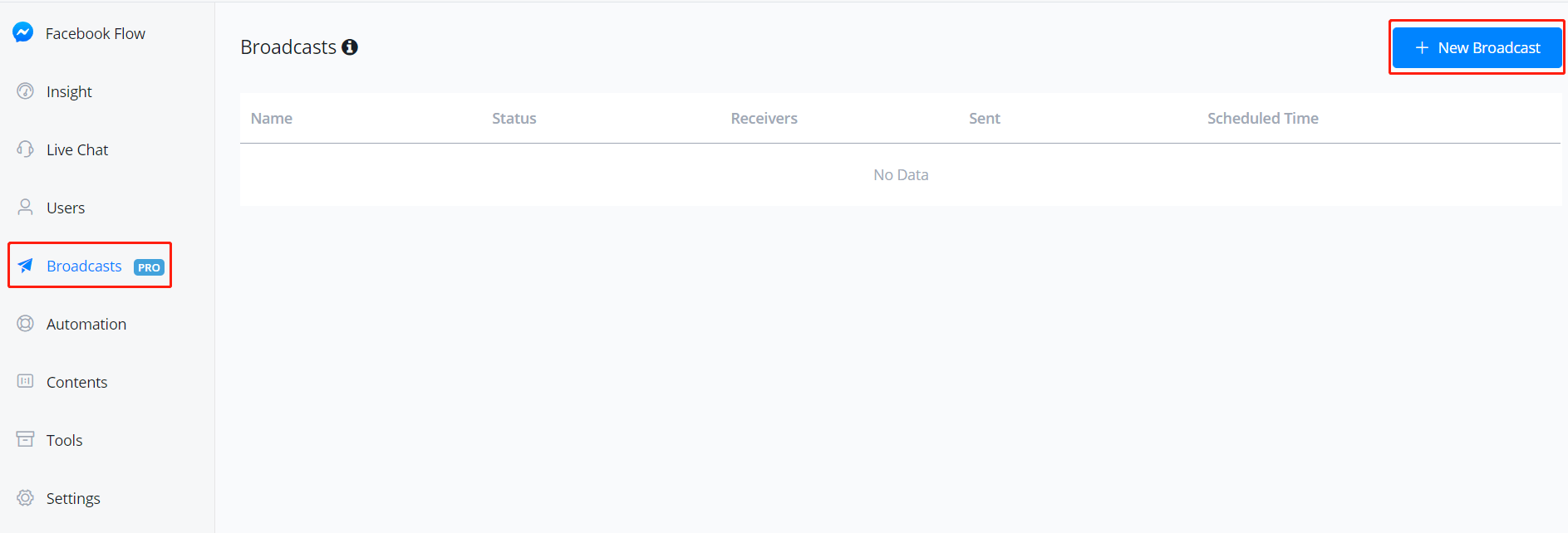 Go "Broadcasts" from the left sidebar, then click "+ New Broadcast".